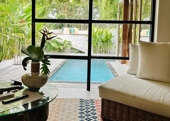 The 1-bedroom Santai Villas Nusa Lembongan offers proximity to nearby tourist spots, such as Sandy Bay Beach Club, situated 1.5 miles away. Situated in the Jungut Batu district of Nusa Lembongan, this 1-bathroom villa features a terrace overlooking pool.